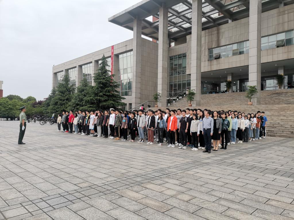 5月6日,计通学院组织师生参加升国旗仪式,学院党委副书记涂道勇出席,学工办全体辅导员、2019级学生代表、民兵连全体同学参加本次仪式。