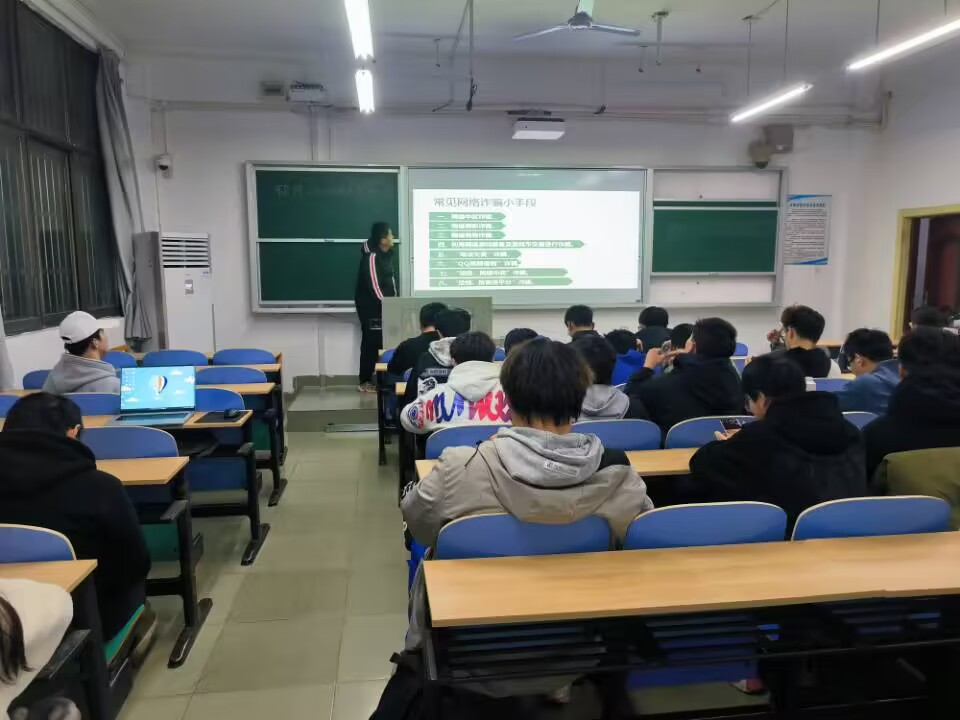 通过介绍常见手段和诈骗类型,如刷单,直播等,提高学生们识别电信诈骗的识别能力,深入解读“五不”“两核实”,引导同学们面对利益诱导性信息不要理睬,个人信息不要轻易透露等来帮助学生鉴别诈骗行为。