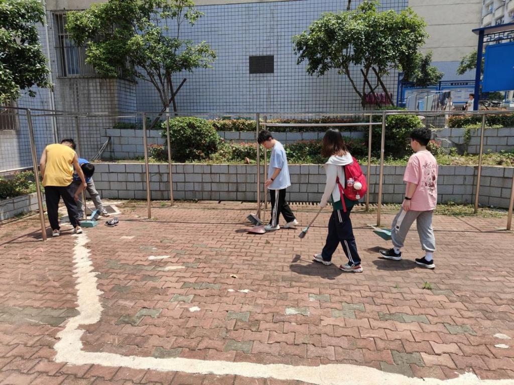 每周二下午,同学们手持扫帚、簸箕等清洁工具,热情高涨地投入到劳动中。他们分工明确,有的清扫校园道路上的落叶和杂物,有的清理卫生死角。尽管烈日炎炎,但同学们不怕脏、不怕累,认真细致地对待每一个角落。