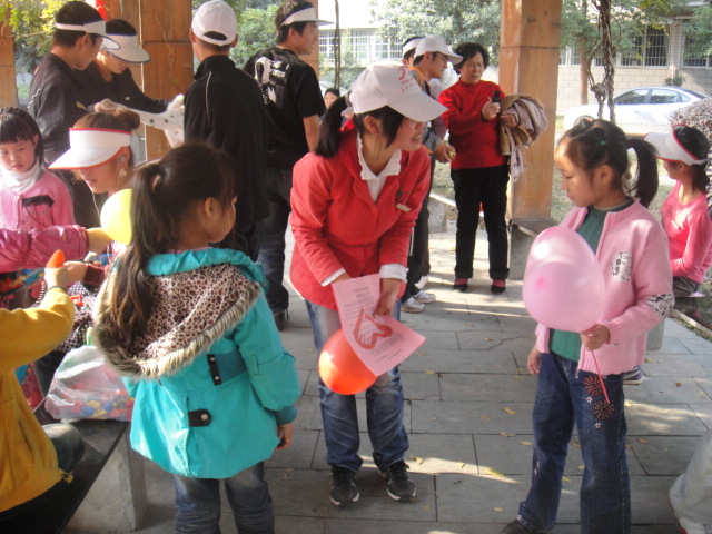 在中天广场水池附近,志愿者们展开“传递爱心火炬”的宣传活动,将“12.5国际志愿者日”的意义及志愿者精神传递给社区。他们组织募捐,倡导居民将闲置衣物捐献出来。活动吸引了很多老人和小孩,青志协的成员和老人聊天,下棋。为了让小朋友们都参与进来,感受什么是奉献,志愿者们开展了简单而又丰富的活动。与此同时,志愿者们在社区进行了义务清扫活动,为社区增添了不少洁净。