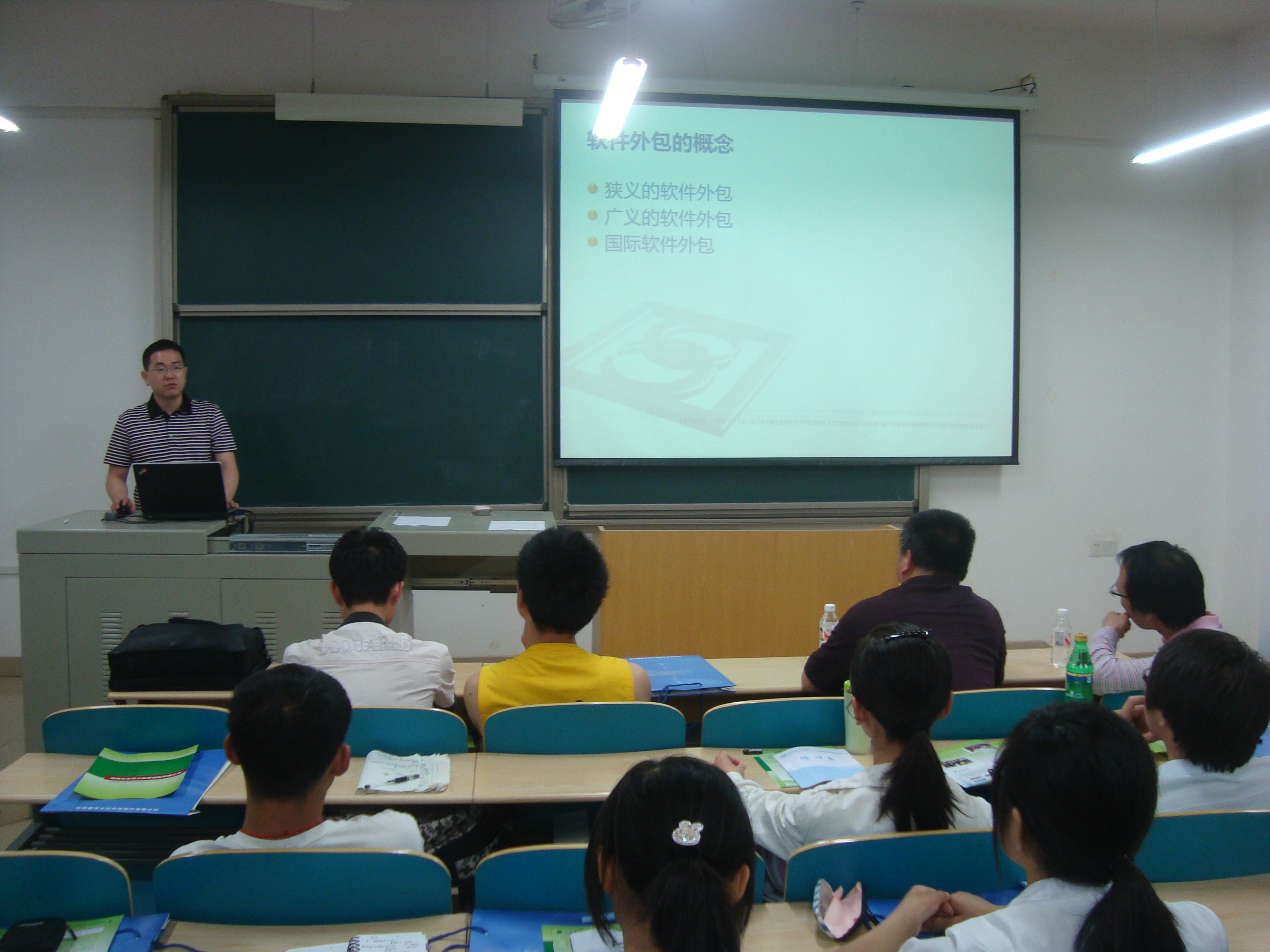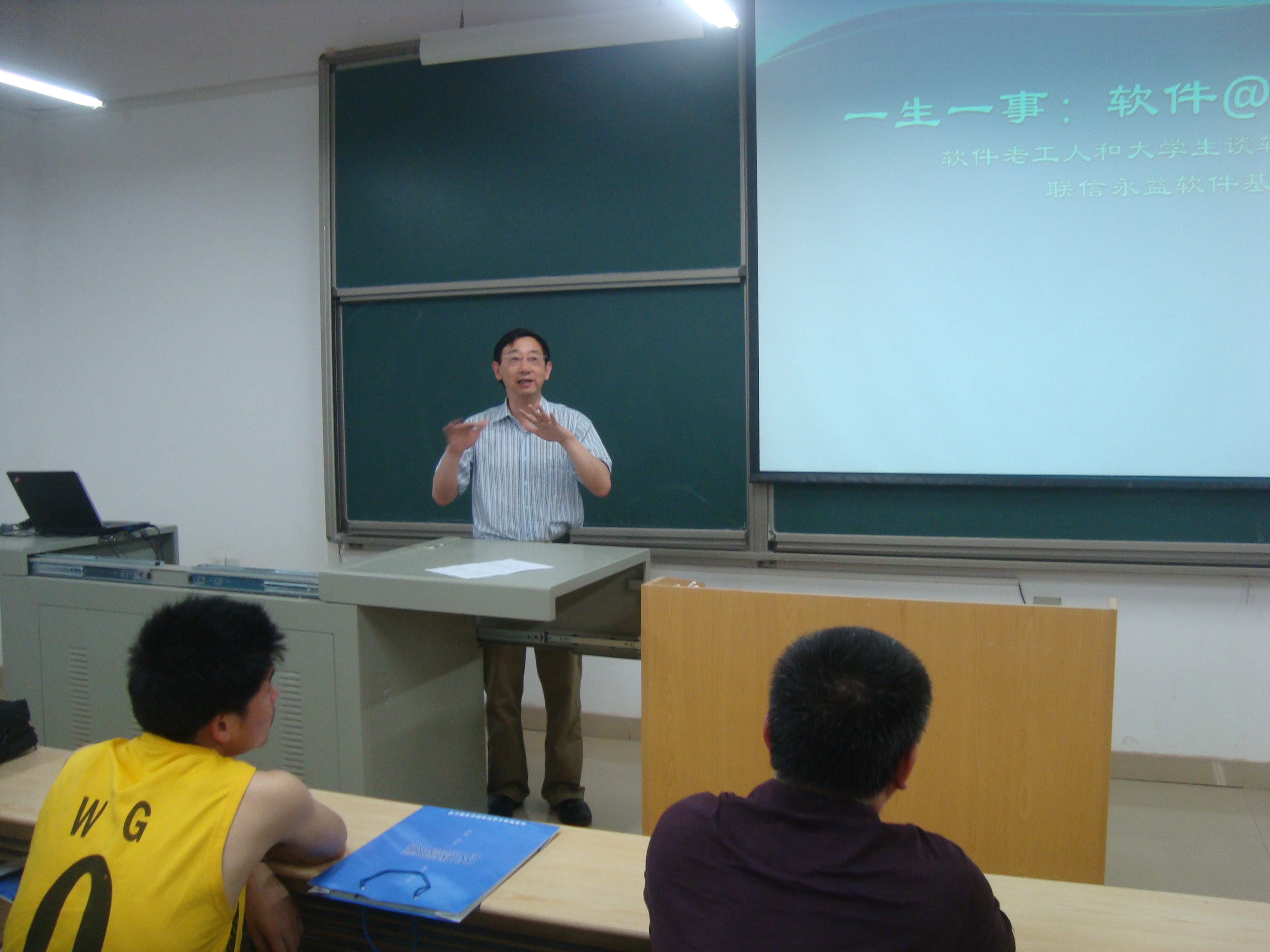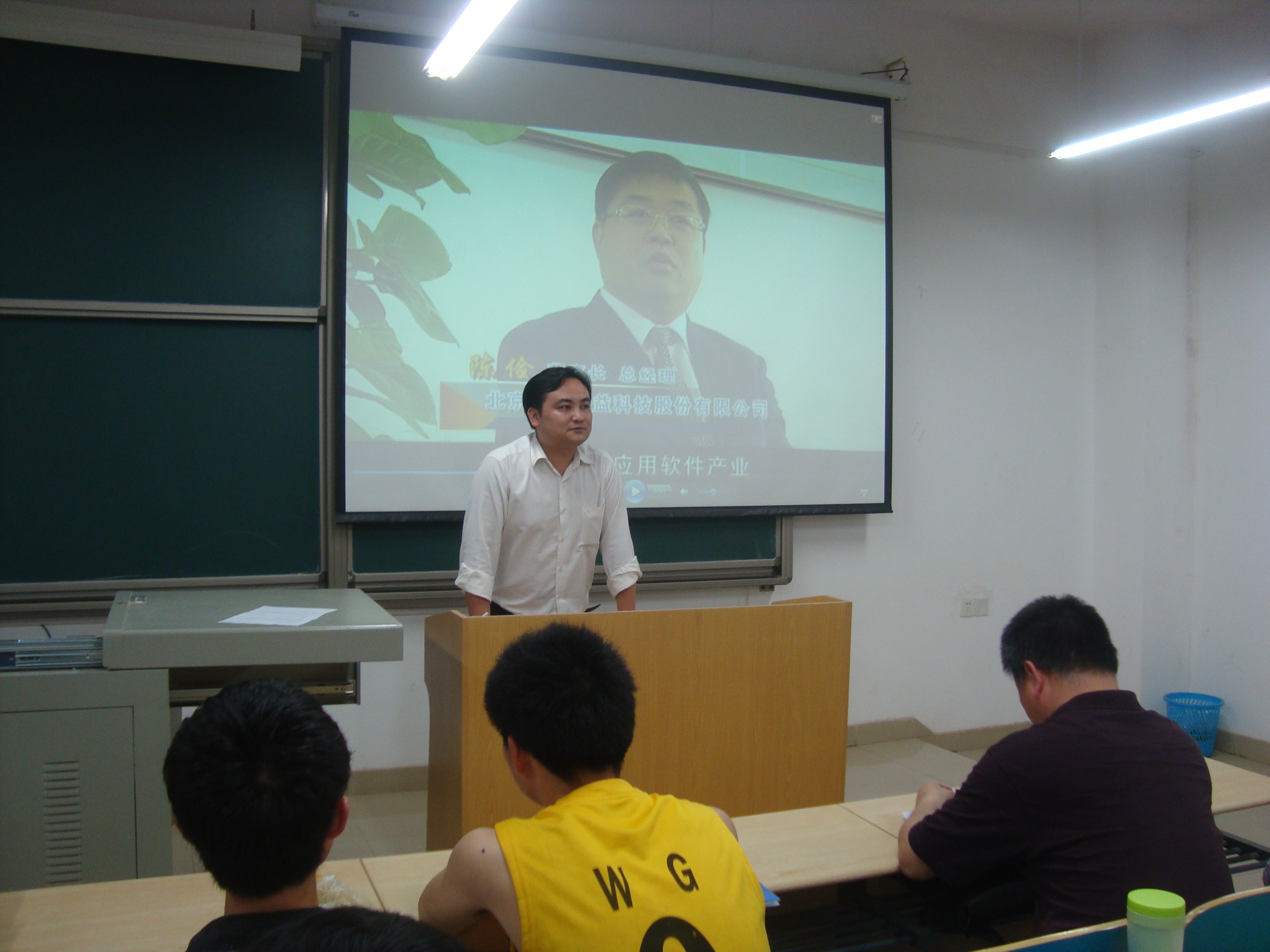 5月16日晚上7:00,计通学院邀请北京联信永益科技股份有限公司软件基地总经理张帜、副总经理杨科在理科楼A212举行了题为《大学生软件创新能力培养与软件服务外包》的专题讲座,院党委副书记方碧波老师、副院长徐蔚鸿教授、院学工办主任伍接朝老师出席,各年级的对软件感兴趣的百余名同学参加。