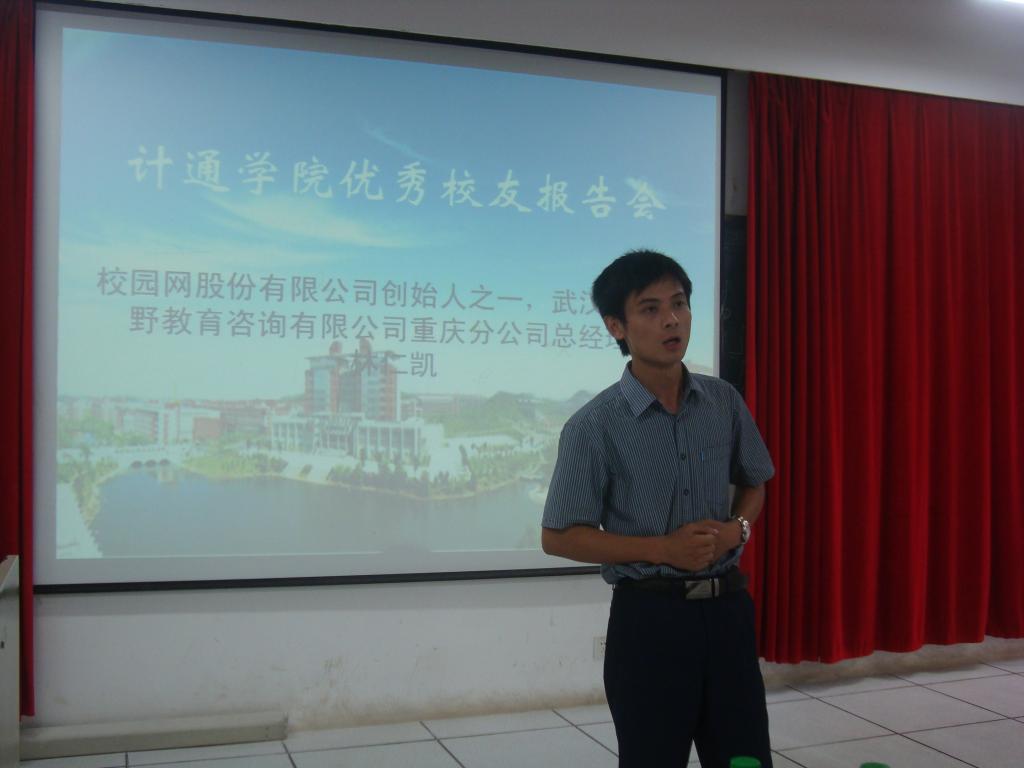 6月17日下午3点计通学院校友创业报告会在理科楼B-311成功举行。这次报告会由2010届网络工程毕业生林仁凯担任主讲,院学工办主任伍接朝老师主持,我院团委、学生会全体干部及各班班长、团支书参加了此次报告会。