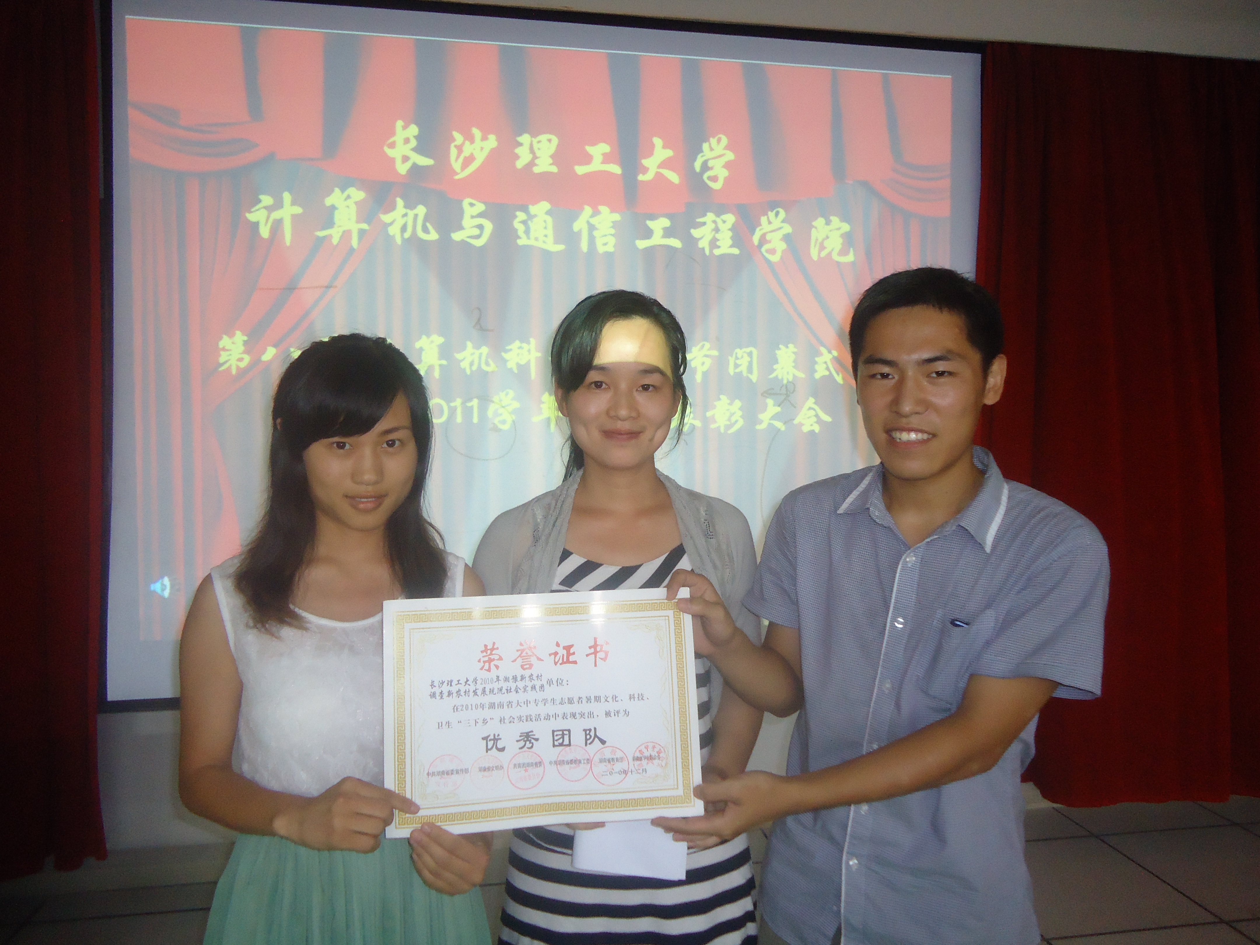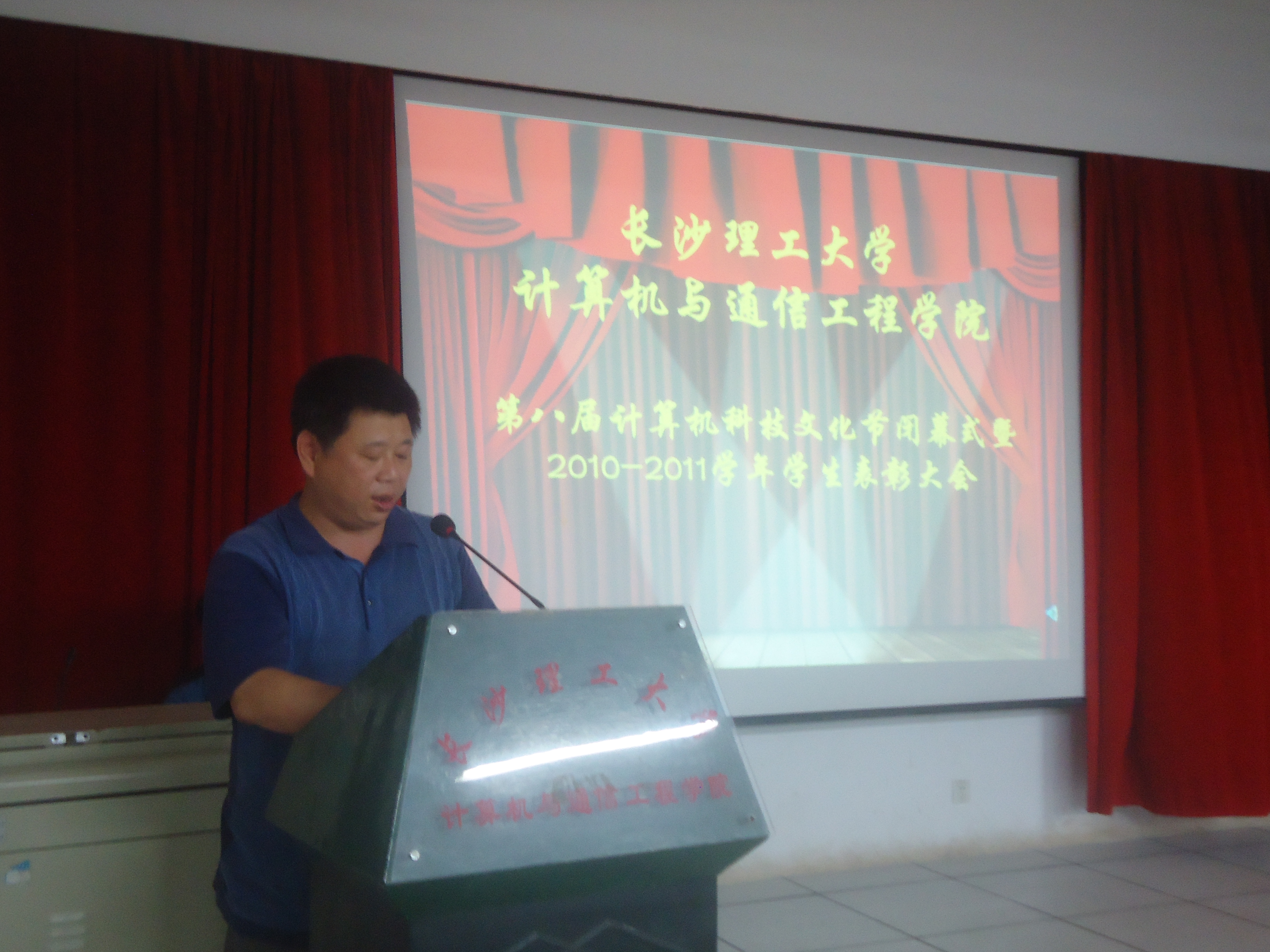 2010年7月4日18:30,计通学院第八届团学全体成员及各年级学生代表聚集在理科楼B311,举行了计算机科技文化节闭幕式暨年度表彰大会。院党委副书记方碧波教授,学工办主任伍接朝老师,学工办彭珊老师,学工办邵巧艳老师,学工办任志祥老师出席了本次大会。