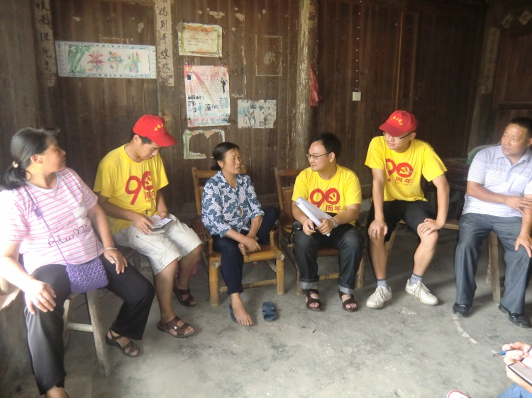 在村委会的协助下,实践服务团的同学们分为两队进行走访调查,分别走访了洞口县畔上村的部分村民,进行开展关于党建工作以及参合的基层调查。在调查中走访中,村民均表示在村上建立的群众工作站给村民很大的帮助,其他各项党建工作如修建村村通马路、修建水利设施,让大家感觉到党对广大人民群众的真实关怀。同时发现走访的村民均参加了新型农村医疗合作社,参合后得到了很多的优惠,对政府参合政策的实施表示由衷的高兴。