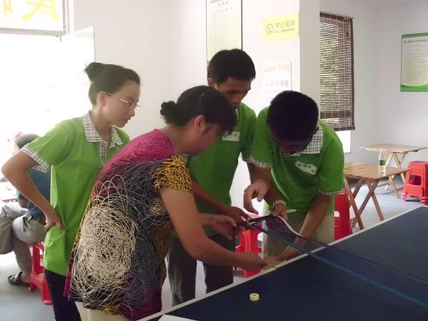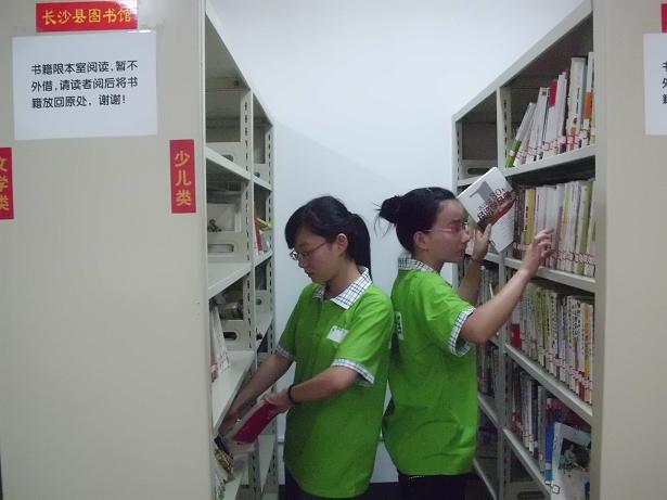 该“活动中心”同时又是社区的“居家养老中心”、“长沙县图书馆红树湾小区书屋”、“老年科协”,有各类图书、棋牌以及体育设施,是社区居民尤其是离退休老人的学习娱乐阵地。志愿者们主动与活动中心的离退休老人进行沟通,了解了他们的思想生活状态,并对老人在生活上存在的困难尽力给予帮助;参与了离退休老人包括下象棋、打乒乓球等在内的各类休闲娱乐活动,给老人们带来了不少乐趣。同时,志愿者也对活动中心书屋的图书进行了分门别类的整理,将图书按文学、少儿、生活和政经四类进行统一归类并整理,方便了小区居民查阅书籍。