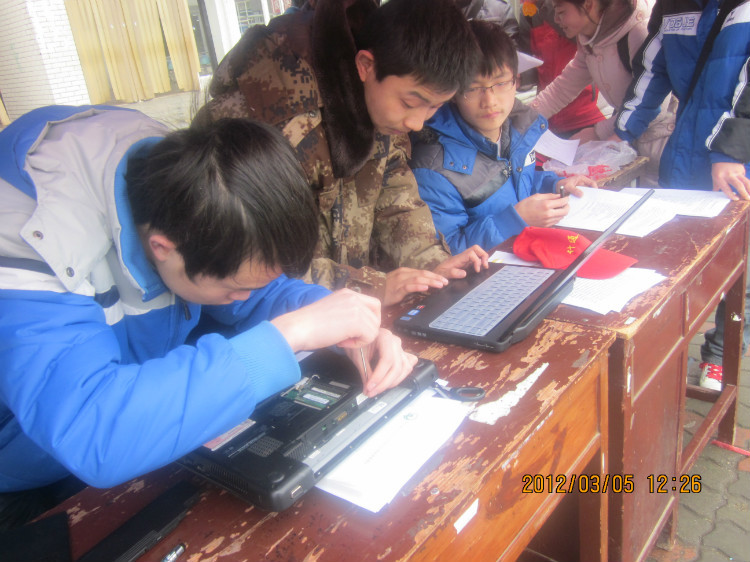 3月5日,在雷锋日这个特殊的日子里,计通学院青志协电脑义务维修小组分别在汀香园和甘怡园前坪进行了面向全校范围的义务维修电脑活动,以实际行动诠释了“向雷锋同志学习”的真正意义。