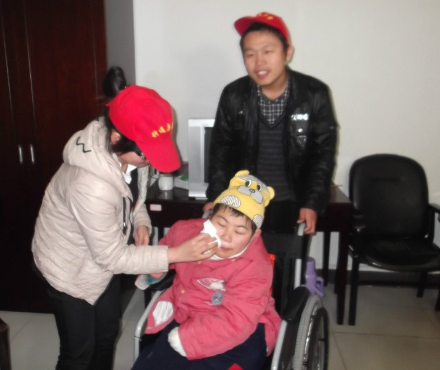 一来到在敬老院,志愿者们就忙活开了,有的拿起扫帚打扫院子,有的拿起铁钳清理杂草,有的拿起铁铲疏通水沟,更有细心的女同学分头擦起了窗玻璃和扶手栏杆,连走廊角落里的蜘蛛网,灰尘都一丝不苟的清理的干干净净。即便水沟里传出难闻的臭味,即便同学们的手被冻的红肿,可为了能给老人营造卫生、舒适的生活环境,志愿者们不怕脏不怕累,任劳任怨。
