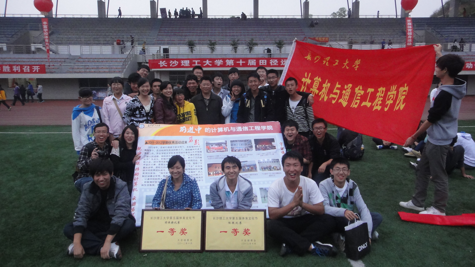 在本届校运动会赛场上,计通学院的运动健儿们挥洒汗水,奋勇拼搏,他们用自己的飒爽英姿诠释了拼搏向上,勇于进取的竞技体育精神。我院团体操队员们经过一个多月的刻苦训练,在校体育文化节上展示了计通学院最青春,最活力的一面,精彩的表演获校第五届体育文化节一等奖。我院制作的“前进中的计算机与通信工程学院”展板在伟德betvlctor1946源于英国第五届体育文化节板报比赛中荣获一等奖。