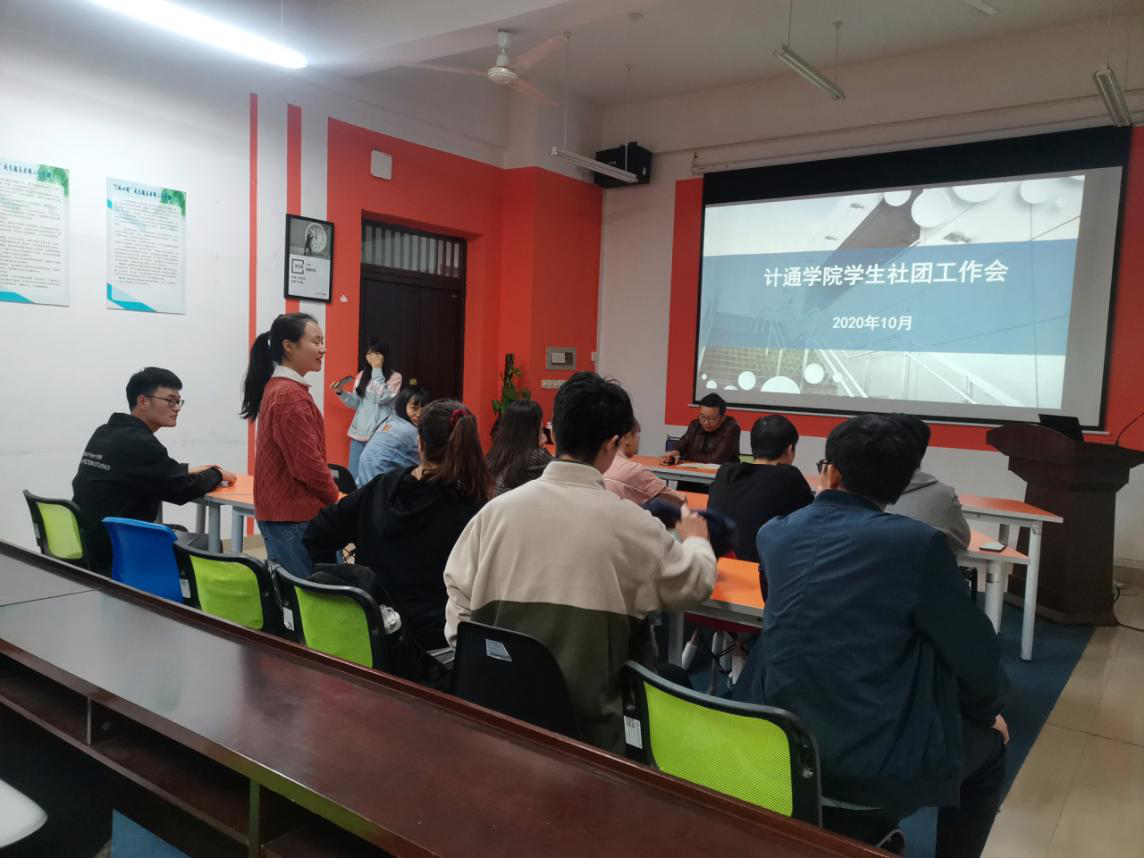 10月26日18:30,计通学院指导的6个社团负责人在理科楼B103参加了社团工作会。院党委副书记涂道勇出席,院团委书记潘枝花主持。电子竞技协会,GLC街舞协会,ACMore编程协会,触电电影协会,歌唱协会,Phone Plus协会的会长、团支书参加会议。