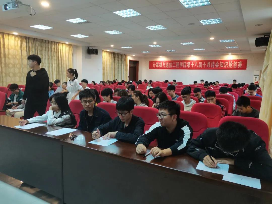 10月10日下午,计算机与通信工程学院在云塘校区理科楼B311会议室举办了第十八届十月诗会知识抢答赛复赛,经过初赛的激烈比试后,共有46人组成的十支队伍进入了复赛。