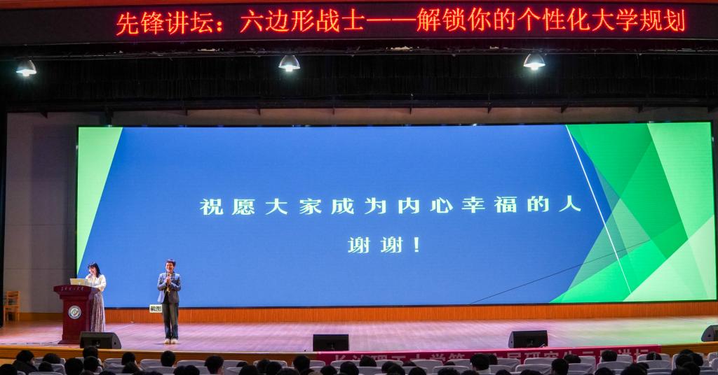 为帮助同学们探索个人兴趣爱好,明确个人职业发展,增加知识储备,为未来人生发展打下良好基础,3月22日晚,计通学院于金盆岭校区五教大礼堂开展了“六边形战士——个性化大学规划”讲座,中南大学博士研究生导师吴海竞主讲,计通学院院党委副书记王觊婧主持,学院辅导员老师出席,计通学院第十四期青马班学员以及23级全体学生参与。