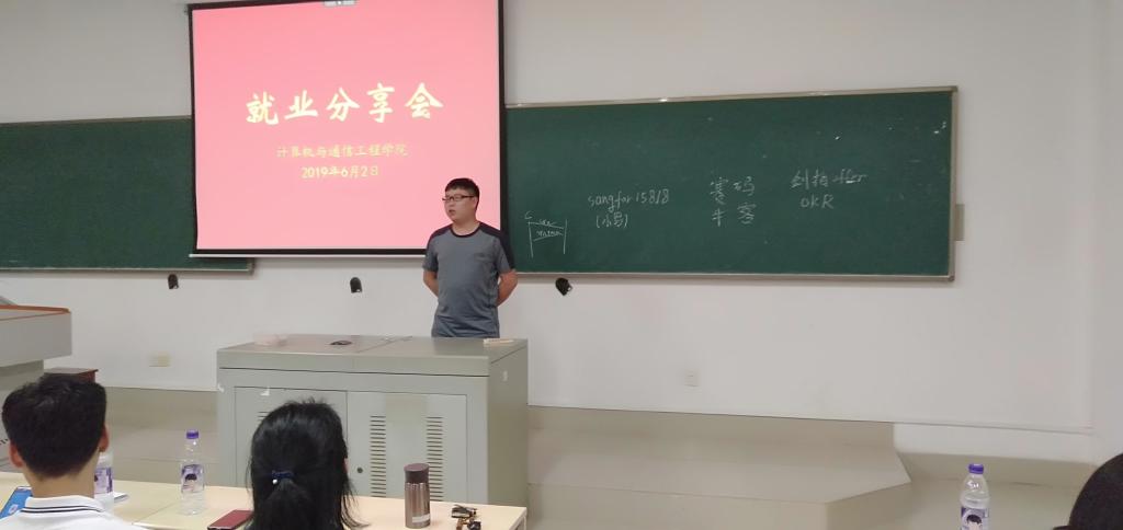 继第一次就业分享会成功开办后,计通学院继续发力,邀请优秀就业代表进行“助力”分享,6月3日晚,计通学院在综合教学楼A405、A407分会场举办了第二次“你就业,我助力”职业与人生大讲堂暨就业经验交流会,主讲人分别为2015级就业优秀代表马国正、聂志雄、刘晓梦、陈胤颖。2016级同学参加。