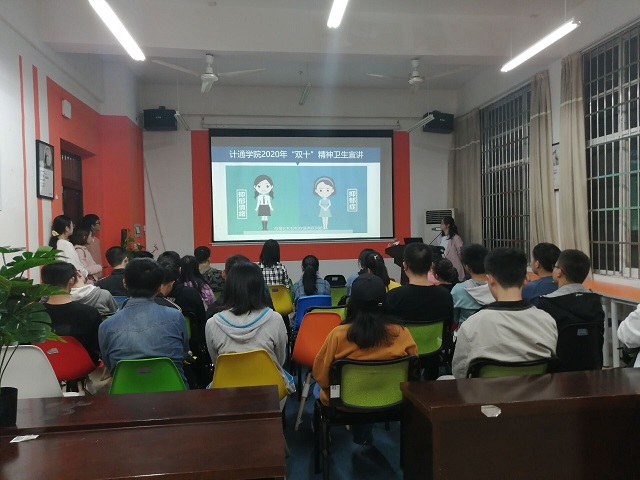 2020年10月10日是第29个“世界精神卫生日”,国家卫生健康委将“弘扬抗疫精神,护佑心理健康”作为第29个世界精神卫生日的主题。晚19:00,计通学院在云塘校区理科楼B103团体辅导室开展宣讲活动,以促进同学们对心理健康的关注,提升科学有效的心理健康应对能力,并学会及时寻求心理援助。