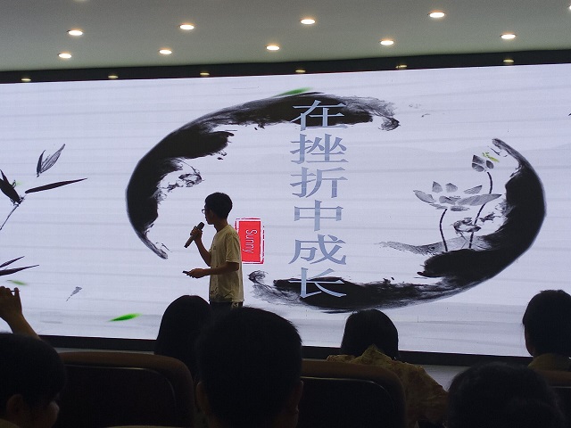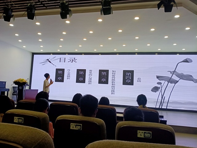 大赛现场选手以“在挫折中成长”为主题,将班会主要内容分为“什么是挫折”、“常见的心理挫折”和“如何看待挫折和面对挫折”三个部分,以PPT形式讲解展示了班会方案及班会可视化成果。班会首先对“什么是挫折”进行了科普讲解;接着,以随机抽取卡牌的形式分组进行了“询问和求助”的讨论互动环节;然后采取了A4纸小实验的形式揭示了一个道理:不断在挫折中培养坚强意志,总结经验,可以让我们不断的成长;最后,以观看励志视频《田埂上的梦》圆满结束了班会展示。选手在赛场上表现沉着,讲授条例清晰,语言诙谐有趣,呈现了一堂主题鲜明、寓意深刻、精彩纷呈的主题班会,充分展现了我院心理委员良好的综合素养。