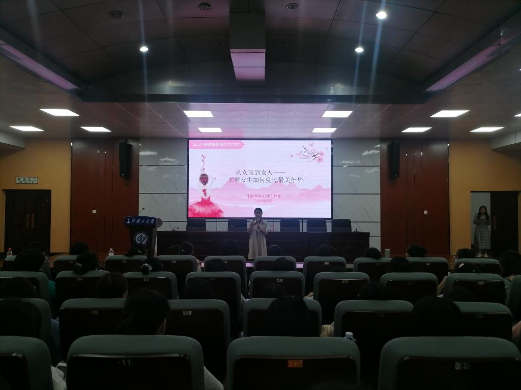 5月24日下午,计通学院在金盆岭四教报告厅开展“525”女生专场心理健康教育讲堂,学院心理辅导员潘枝花主讲“从女孩到女人——大学女生如何度过最美年华”。