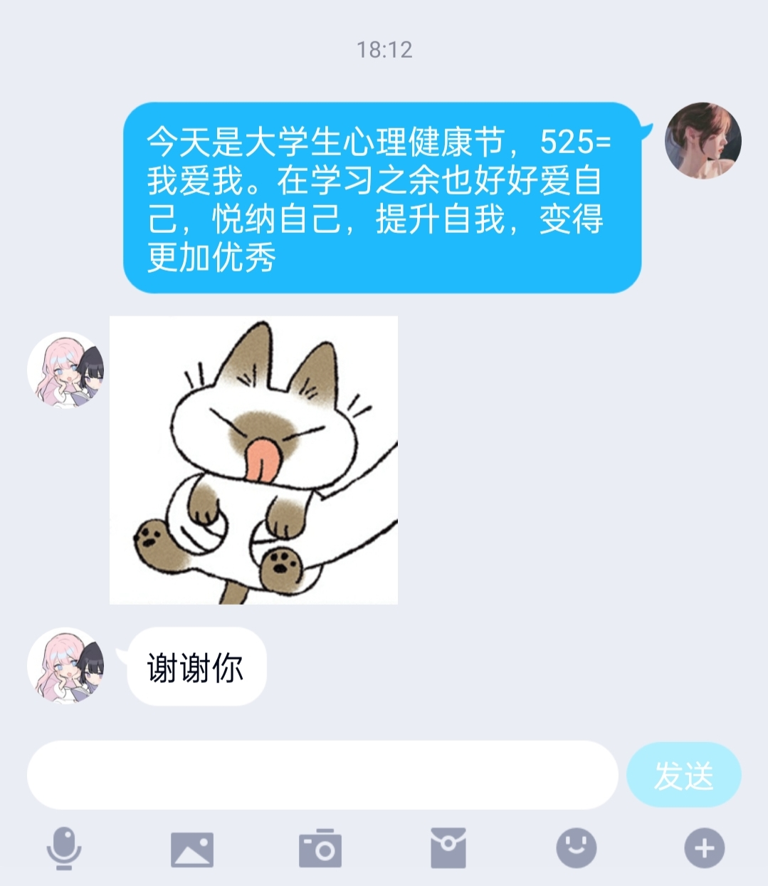 5月25日当天,计通学院面向全院学生在5月25日举办了温暖传递-—5月25日短信祝福活动,各班心理委员通过qq、微信等方式编辑信息,给辅导员、班主任、任课老师以及班上的同学发送祝福短信,提醒大家“525”这个日子的特殊含义,提醒所有人在忙碌的学习、工作中不要忘记关爱自我,了解自我,接纳自我。此次活动即可以给每个发送短信的同学和收到短信的老师和同学一份温暖的力量,又普及了心理知识,提高了大家对于心理健康的重视。