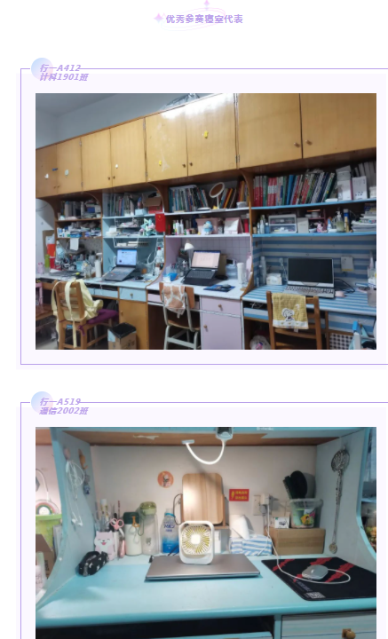 4月25日至5月25日,计通学院举办了“收纳物,整理心”寝室收纳大赛班级健心活动。此活动旨在帮助同学们培养良好的卫生习惯,引导大家创建整洁美观、舒适和谐的学习环境,进一步提高同学们的综合素质,促进宿舍关系的和谐,营造良好的宿舍文化氛围。