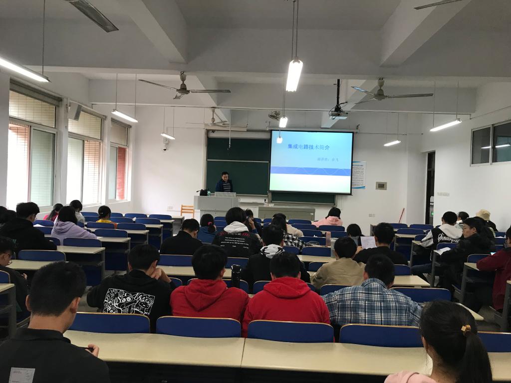 10月26日下午,计通学院通信工程系副主任余飞副教授,在云塘校区工科一楼B210室主讲了《集成电路技术简介》的通识教育学术讲座。2019级通信工程专业本科生听取了本次讲座。