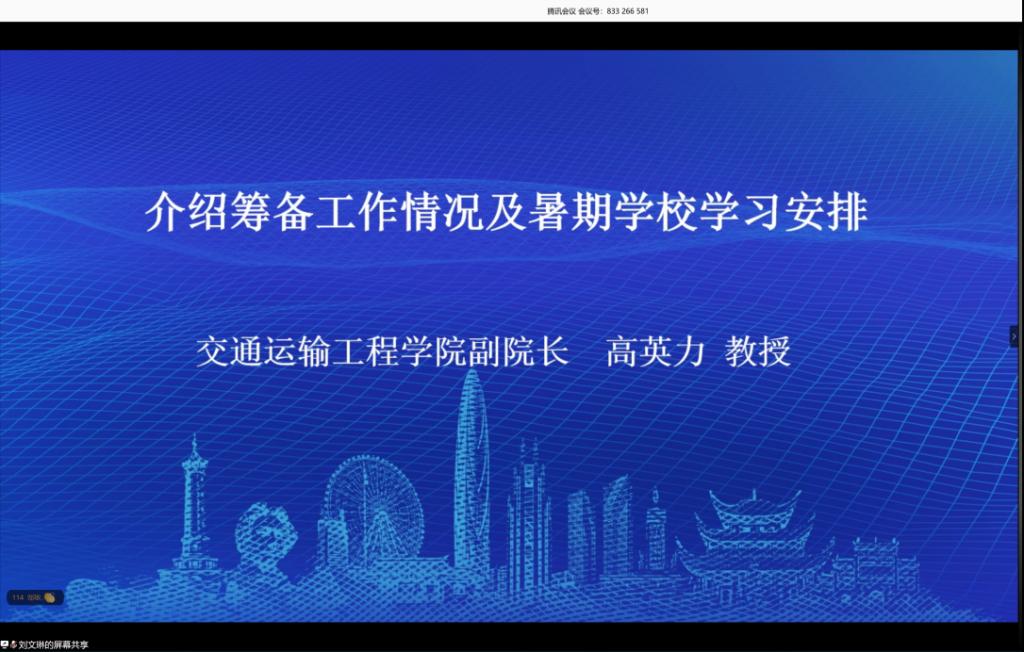 交通运输工程学院副院长高英力教授介绍了筹备工作情况及暑期学校的学习安排,本次暑期学校获得了省内外本专业研究生们的广泛关注和热情参与,共录取了160余名研究生参加学习,并且聘请了国内外交通运输工程学科领域内学术水平高、教学经验丰富的知名专家、学者担任主讲教师,将组织10场高水平学术报告与交流。