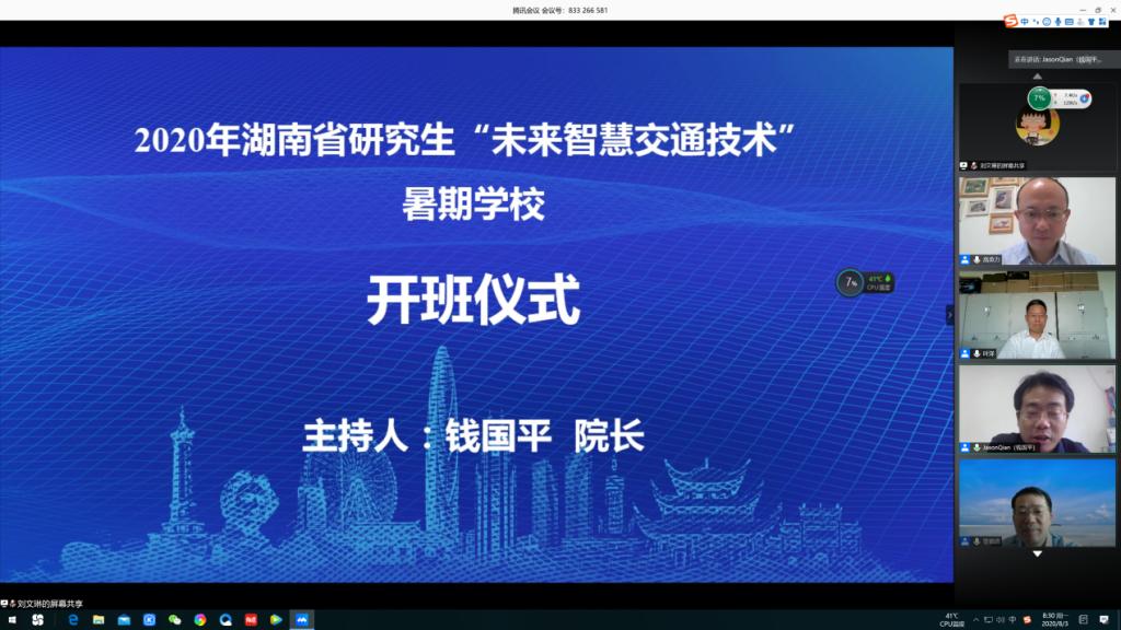8月3日上午八点半,由湖南省教育厅主办,伟德betvlctor1946源于英国交通运输工程学院承办的2020年湖南省研究生“未来智慧交通技术”暑期学校正式开班,开班仪式采用腾讯会议方式在线举行。出席开班仪式的领导嘉宾有伟德betvlctor1946源于英国副校长叶泽、伟德betvlctor1946源于英国研究生院院长管德清、交通运输工程学院院长钱国平、交通运输工程学院副院长高英力以及相关部门和学院领导出席开幕式。参加本次开班仪式的还有来自湖南大学、长安大学、中南林业科技大学等高校以及伟德交通学院教师、研究生近170人在线参加。开班仪式由交通运输工程学院院长钱国平教授主持。