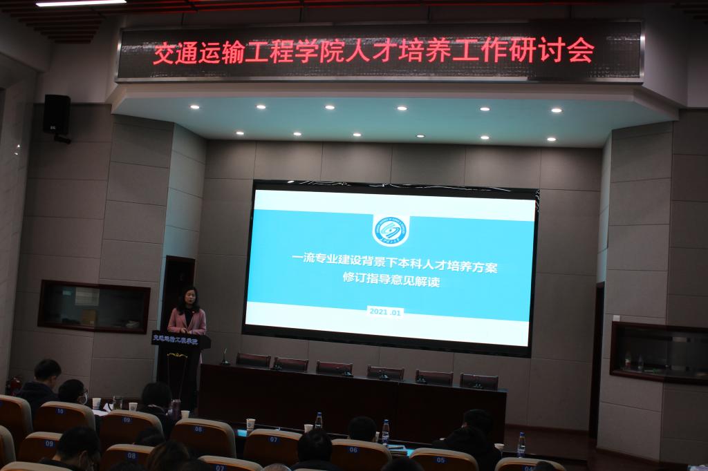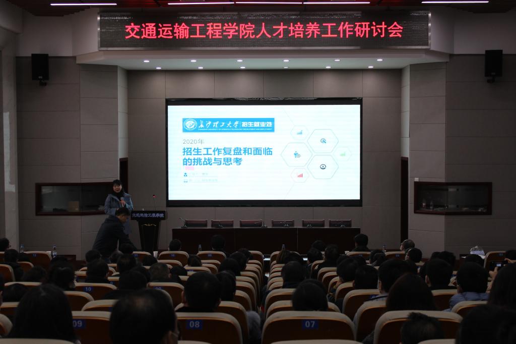 为深入贯彻落实习近平总书记关于教育的重要论述,落实教育强国重要战略,进一步提高人才培养质量,促进学院“双一流”建设,1月22日上午,交通运输工程学院在工二B-301报告厅召开人才培养工作研讨会。全体院领导和全院教职工参加了会议。会议由院党委副书记王煜坤主持。会议邀请招生就业处处长曹瑛、教务处副处长蒋菲作主题报告。