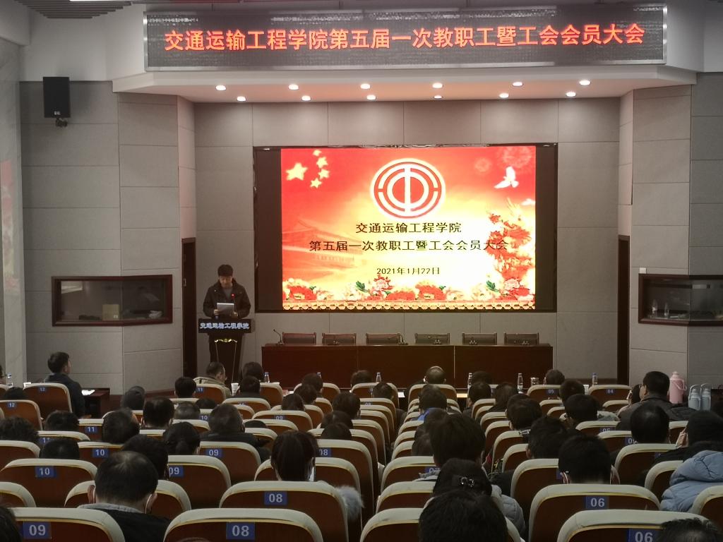 1月22日下午,交通学院第五届一次教职工暨工会会员大会在工二B-301报告厅召开。院党委副书记王煜坤主持会议,院领导及全院教职工参加。
