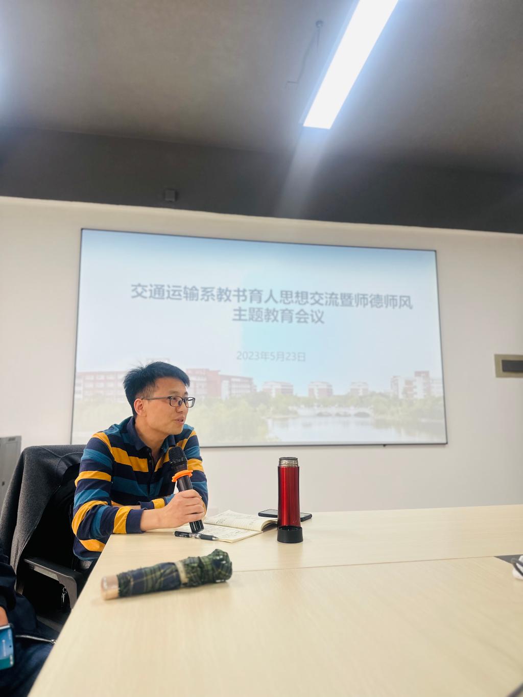 2023年5月23日下午2:30,交通运输系全体教师前往学校“三全育人”基地开展实践学习,并召开教书育人思想交流暨师德师风主题教育会议,开展学习心得交流与教研活动,系主任张生老师主持了此次会议。