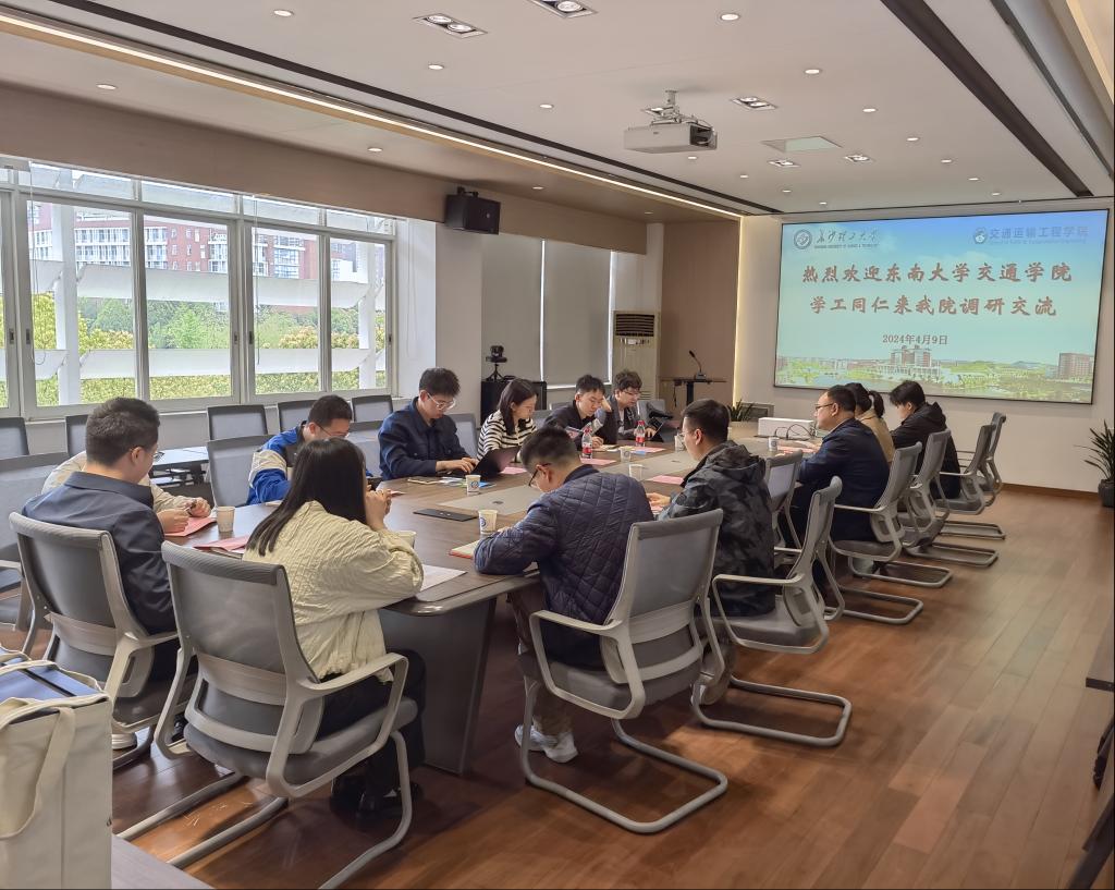 4月9日上午,东南大学交通学院党委副书记兼副院长张航一行5人到伟德betvlctor1946源于英国交通运输工程学院考察交流。伟德betvlctor1946源于英国交通运输工程学院党委副书记兼副院长任志祥、学工办全体辅导员参加学生工作调研交流会。