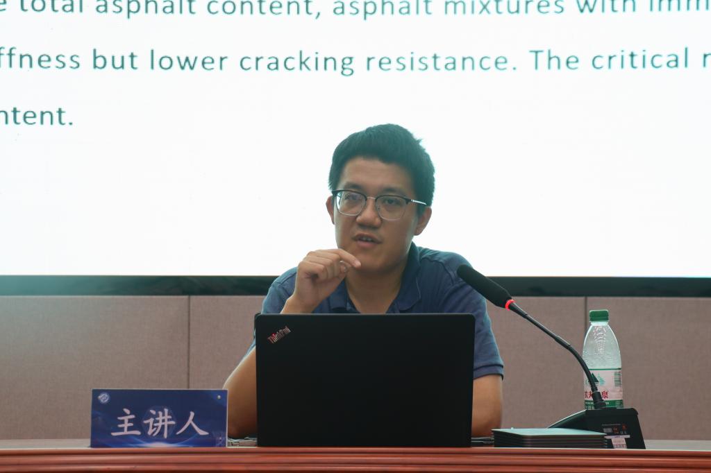 马跃潭教授围绕“沥青路面全组分就地再生技术与应用”详细介绍了再生沥青混合料有效沥青含量、不可被激发的旧沥青是否有用以及它们是如何影响混合料性能等关键科学问题。通过自己主持的国家重点科研项目着重介绍了HIR与HMA养护、HIR混合料混溶机理、HIR混合料有效沥青含量量化方法及性能优化、有效沥青含量对胶浆特性与混合料性能影响机制以及“黑石”沥青界面黏结机制,他的创新成果揭示了再生胶集界面黏结机制,实现了沥青路面全组分高值再生。