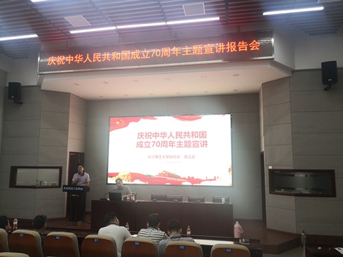 根据学校《关于组织庆祝中华人民共和国成立70周年主题宣讲活动的通知》要求,9月23日下午,在工科二号楼B-301报告厅,伟德副校长黄立宏教授来我院作“庆祝中华人民共和国成立70周年”主题宣讲报告,报告会由我院党委书记胡庆国主持,交通运输工程学院、数学与统计学院的全体教职工听取了报告会。