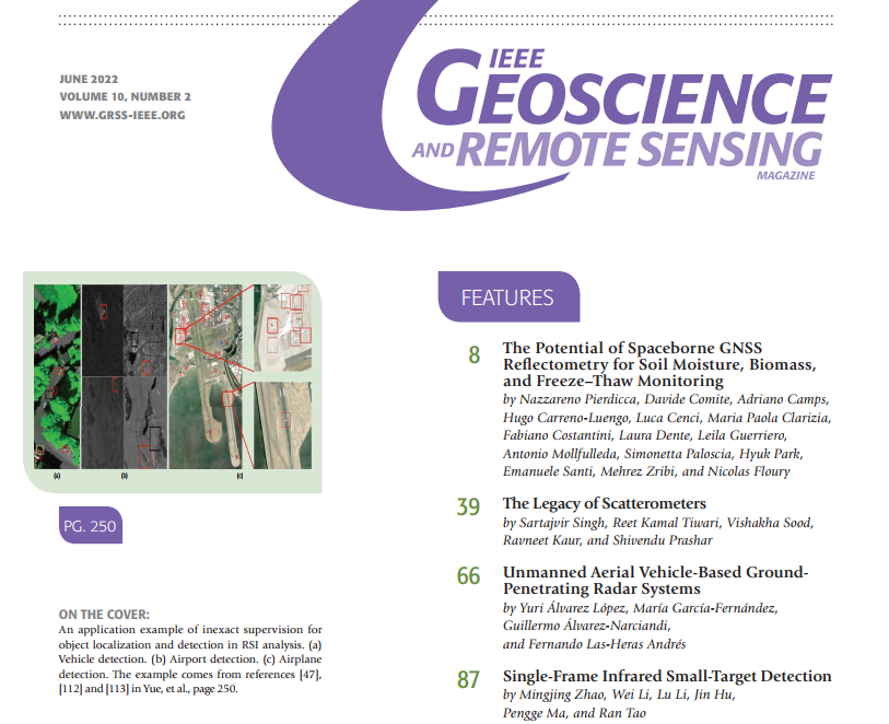 近日,我院测绘工程系岳俊老师以第一作者在遥感领域著名期刊《IEEE Geoscience and Remote Sensing Magazine》(IEEE GRSM)发表题为"Optical Remote Sensing Image Understanding With Weak Supervision: Concepts, methods, and perspectives"的论文,该论文被选为IEEE GRSM第10卷第2期封面论文(ON THE COVER)。论文合作单位包括湖南大学、中山大学、西安电子科技大学、德国德累斯顿-罗森多夫赫尔姆霍兹中心(HZDR)、法国格勒诺布尔理工学院以及西班牙埃斯特雷马杜拉大学。该项工作得到国家自然科学基金项目、湖南省自然科学基金项目和湖南省教育厅优秀青年项目的共同资助。