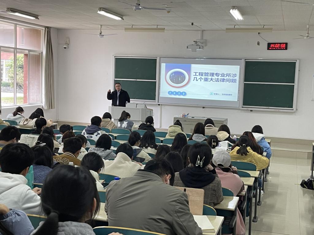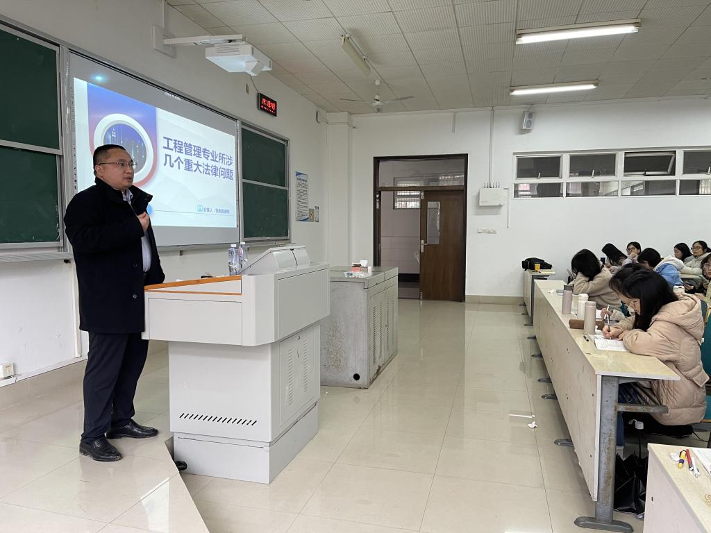 2023年3月29日下午,工程管理专业校外导师,湖南工总律师事务所主任、高级合伙人、首席律师张树森先生走进2020级工程管理本科生《建筑法规A》课堂,结合工程实践,给同学们上了一堂生动精彩的专题课。