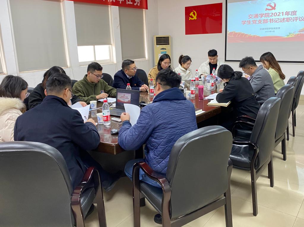 1月12日下午,交通学院学生党总支于工二B401召开2021年度学生党支部书记述职评议会议,全体学生党总支委员、各学生党支部书记与会。