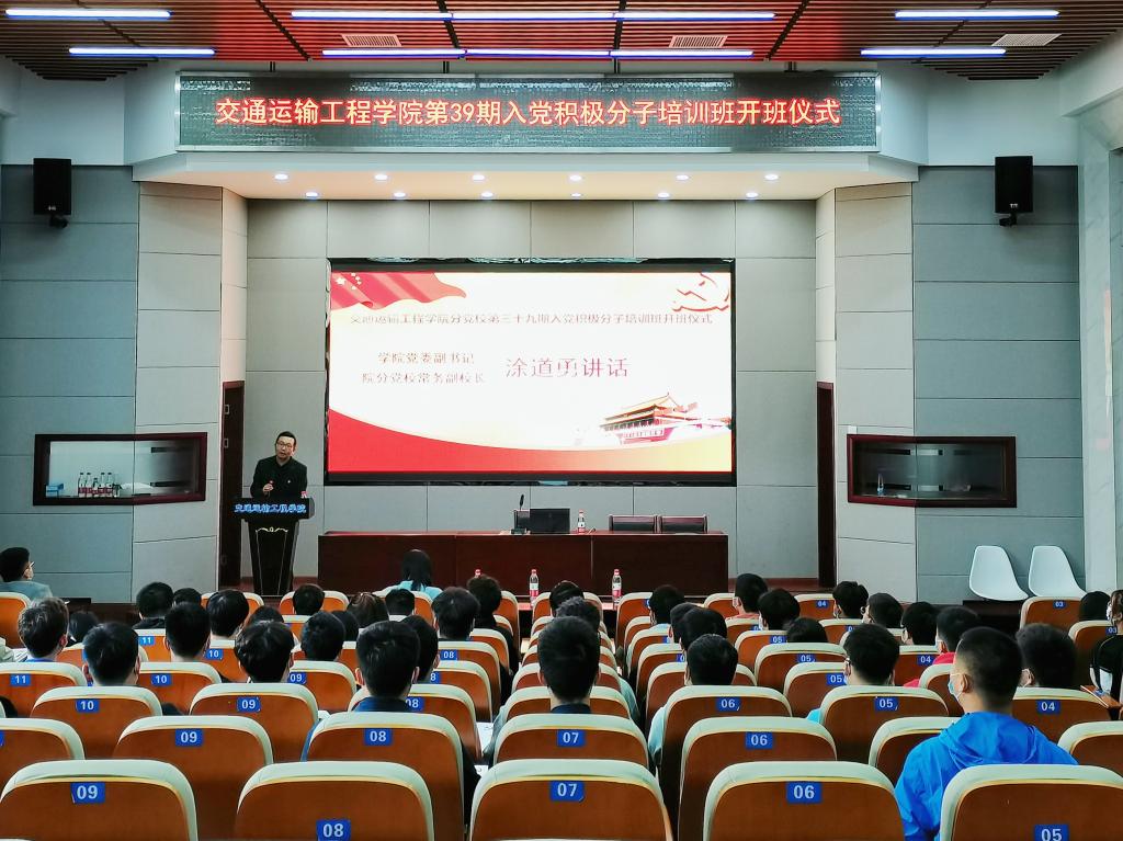 4月19日下午,交通学院分党校于工二交通科技报告厅举行第三十九期入党积极分子培训班开班仪式。学院党委副书记兼分党校常务副校长涂道勇、党校秘书肖敏强出席,第三十九期入党积极分子培训班全体学员参加。