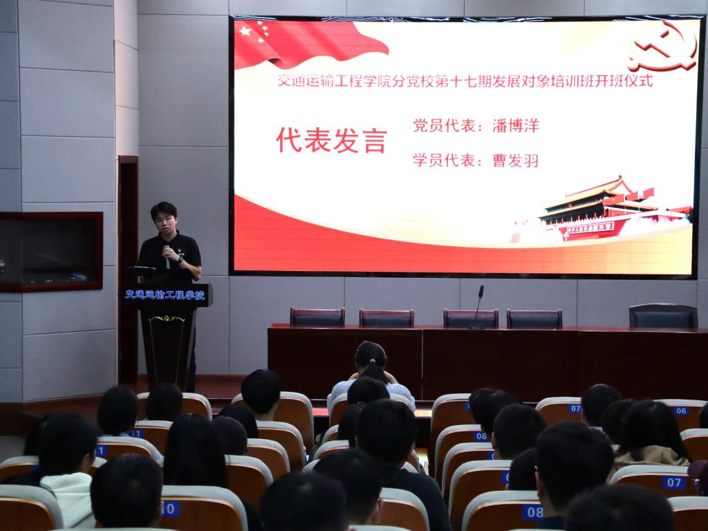 11月9日晚,交通学院分党校于工二交通科技报告厅举行第十七期发展对象培训班开班仪式,党委副书记、分党校副校长涂道勇,分党校秘书肖敏强和第17期发展对象培训班全体学员参加。