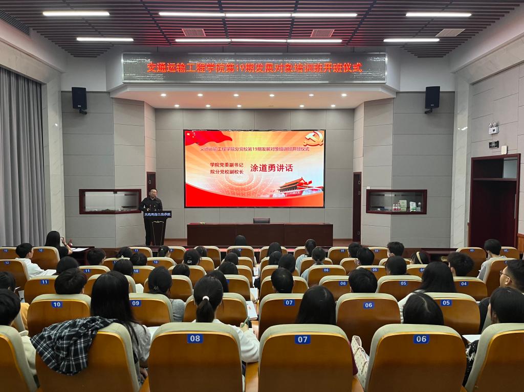 10月26日晚,交通学院分党校于工二交通科技报告厅举行第十九期发展对象培训班开班仪式,院党委副书记、分党校副校长涂道勇,分党校秘书肖敏强和第十九期发展对象培训班全体学员参加。
