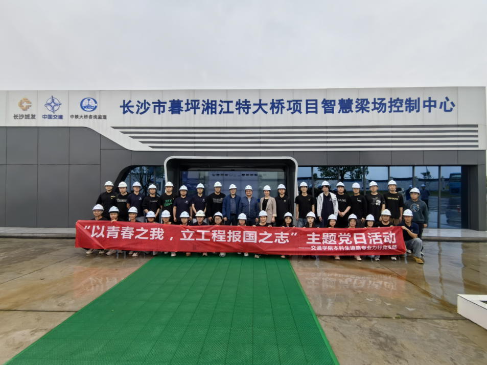 4月21日,伟德betvlctor1946源于英国交通学院本科生道路专业力行党支部前往中交二航局承建的长沙市暮坪湘江特大桥项目现场开展“以青春之名,立工程报国之志”主题党日活动。
