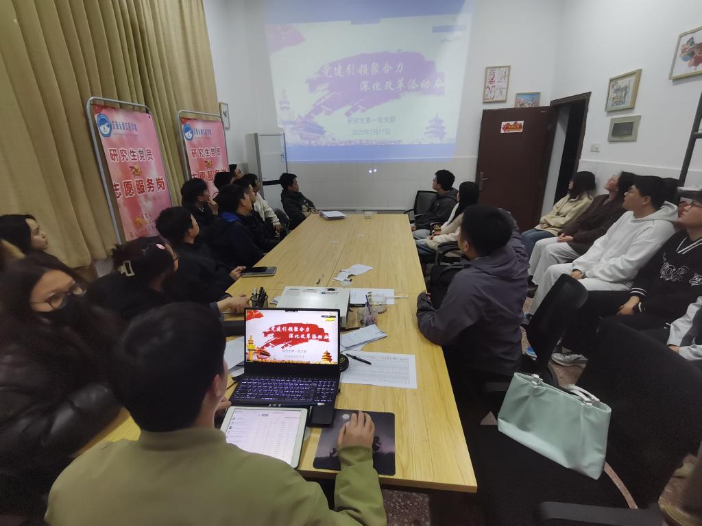 为深入学习习近平总书记重要讲话精神及党的二十届三中全会精神,弘扬和培育新时代雷锋精神,深刻领会自我革命、全面从严治党等重要思想,2025年3月17日,交通学院研究生第一党支部在公路工程实验中心B410顺利召开“党建引领聚合力,深化改革添动力”主题党日活动。支部党员应到45人,实到45人,此次党日活动由党支部书记饶超越同志主持。