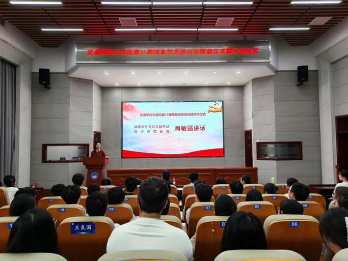 4月17日下午,交通学院分党校第三十一期中共预备党员授徽仪式暨培训班开班仪式在工科二号楼交通科技报告厅举行。分党校秘书肖敏强、研究生辅导员李文博、各学生党支部委员代表及第31期全体预备党员学员参加。