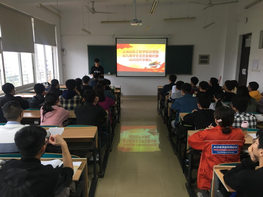 5月7日下午,交通学院第九期发展对象培训班开学典礼在工科二号楼B-604室举行。交通学院分党校常务副校长田上、培训部人员及全体培训学员参加。