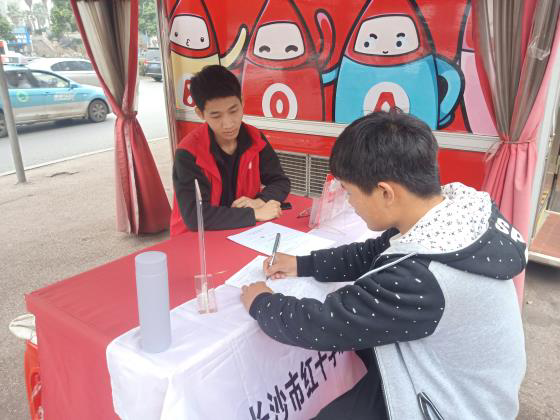 111日,交通学院在红星大市场开展献血车志愿服务活动,志愿团成员罗洁、林伟博、涂智超和李淑桐参与其中。