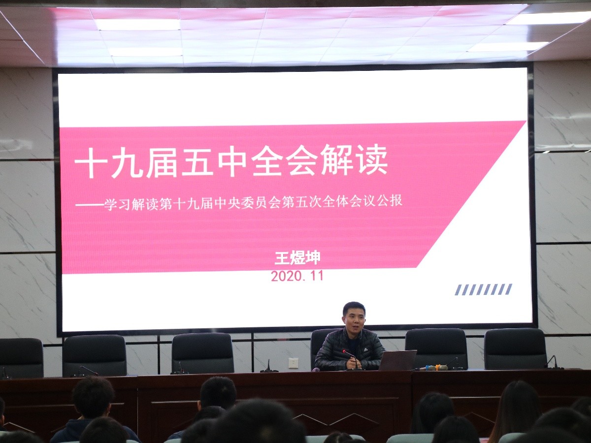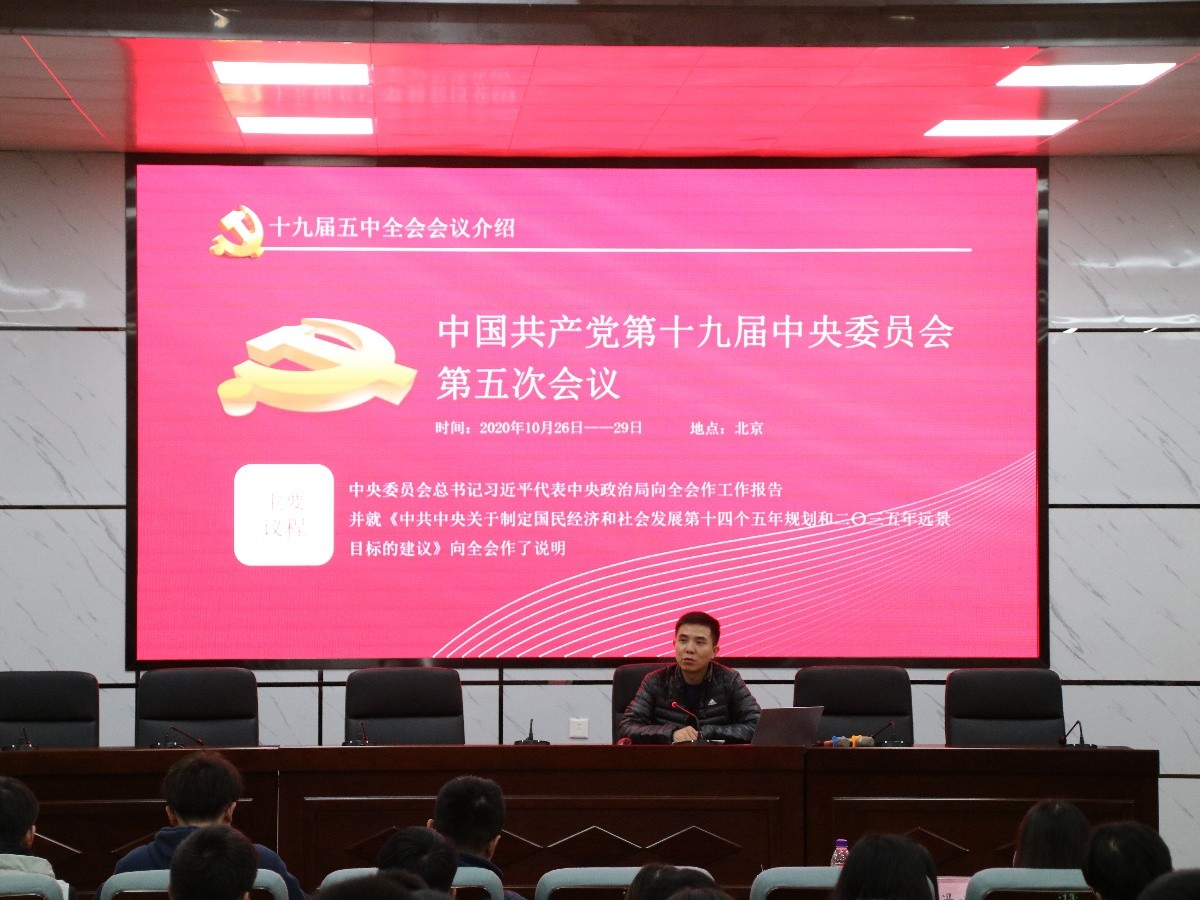 为使学生干部深入学习、贯彻党的十九届五中全会精神,11月23日晚,交通学院于金盆岭校区四教报告厅召开学习党的十九届五中全会精神会议。本次会议由交通学院党委副书记王煜坤主讲,交通学院分团委书记彭笠、交通学院2020级辅导员周静、冯心崚出席会议,交通学院分团委、学生会委员及2020级学生干部与会。