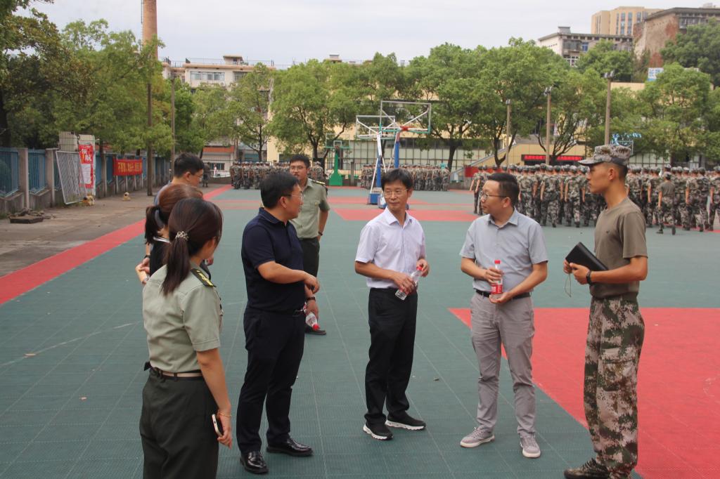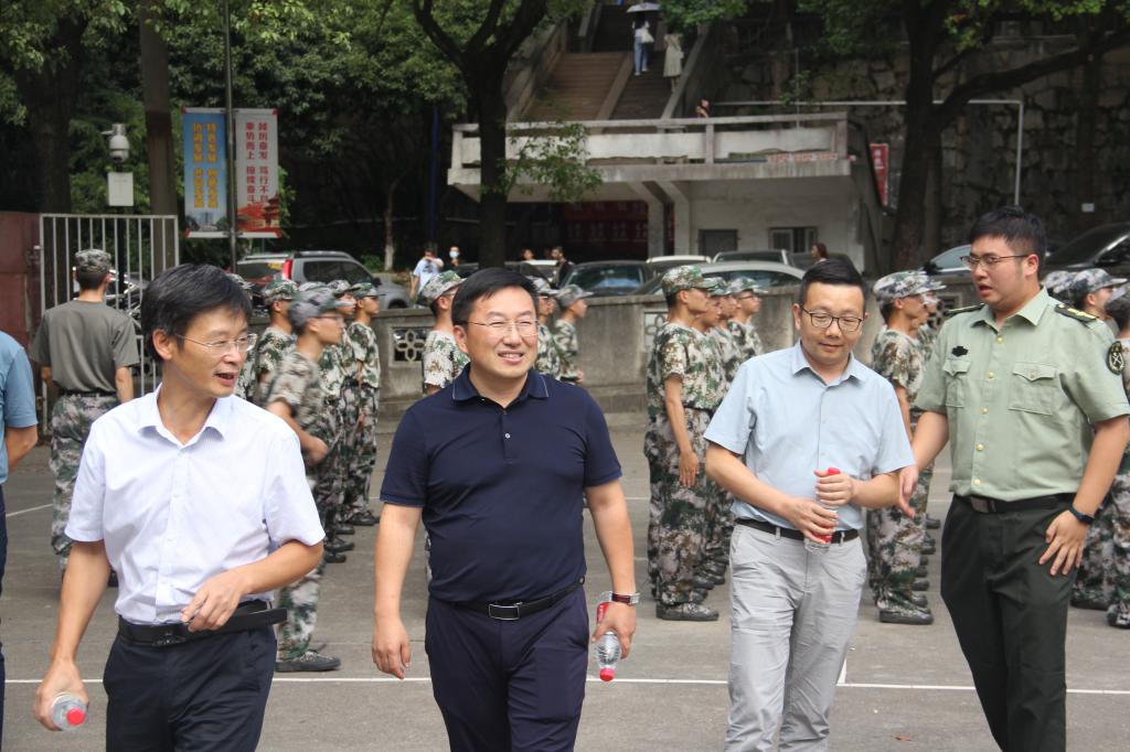 烈阳炼宏志,慰问暖人心。9月7日下午,交通学院党委书记刘朝辉、党委副书记涂道勇、院长张军辉等院领导班子成员赴金盆岭校区南苑篮球场,亲切慰问2022级军训新生,新生辅导员汪招霞、刘禹陪同。