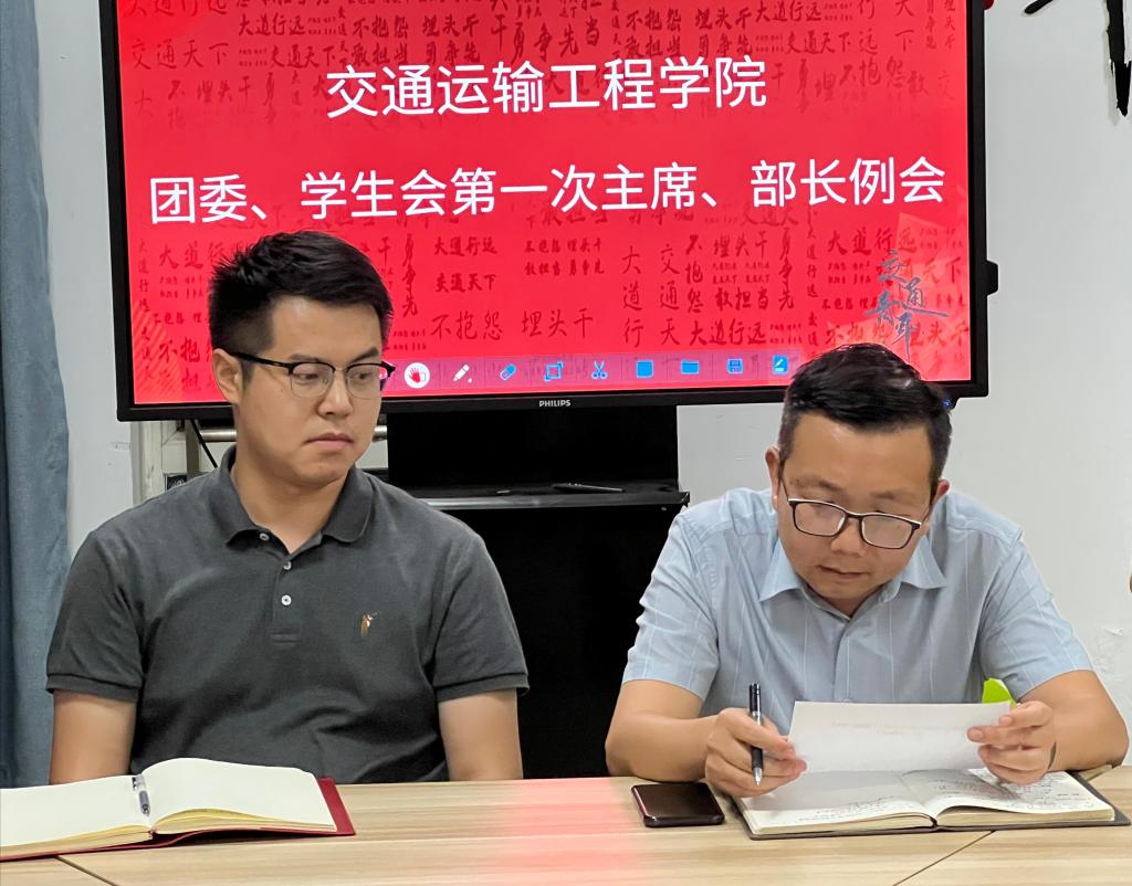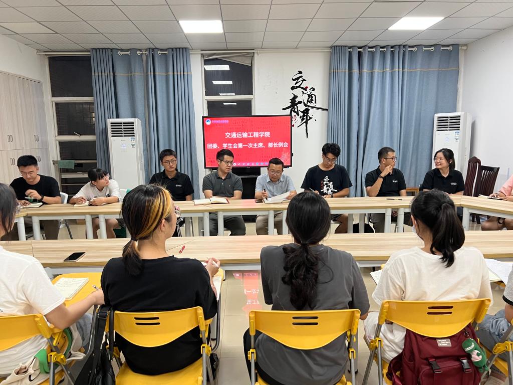 9月12日晚,交通学院于云塘校区工科二号楼B-417召开第十六届团委、学生会第一次主席团、部长例会。交通学院党委副书记涂道勇、团委书记彭笠出席会议,轮值主席郭纪行主持会议,团委、学生会全体主席团成员及部长参加。