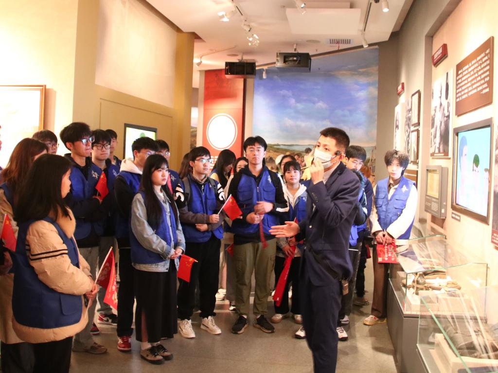 走进纪念馆大门,在讲解员的介绍下,志愿者们了解了雷锋22年短暂而伟大的生命历程。沿着照片墙,志愿者们可以看到,雷锋一心向党,崇拜英雄;在自己的岗位上兢兢业业,脚踏实地;他在平凡岗位上创造出了不平凡的人生。雷锋的路,一段平凡而伟大的路,是在不断为人民服务中提升自我、实现价值的人生路。队伍在这里停留下来,志愿者们仔细阅读雷锋的生平经历与服务故事,感悟雷锋精神的形成过程与深刻内涵,内化于心,外化于行。