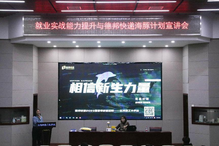 “一个人就业实践能力的高低并非由单项技能的好坏决定,而是需要多方面综合起来比较。”李贝首先分享的是如何提升就业实践能力,她着重介绍了简历制作、职场礼仪与无领导小组面试三部分。随后,李贝介绍了德邦快递海豚计划、企业人才培养计划以及企业岗位员工福利等,鼓励同学们了解行业内不同企业的文化特点、工作模式以及发展规划,同学们积极进行互动,并获得了企业的精美奖品,现场气氛热烈。