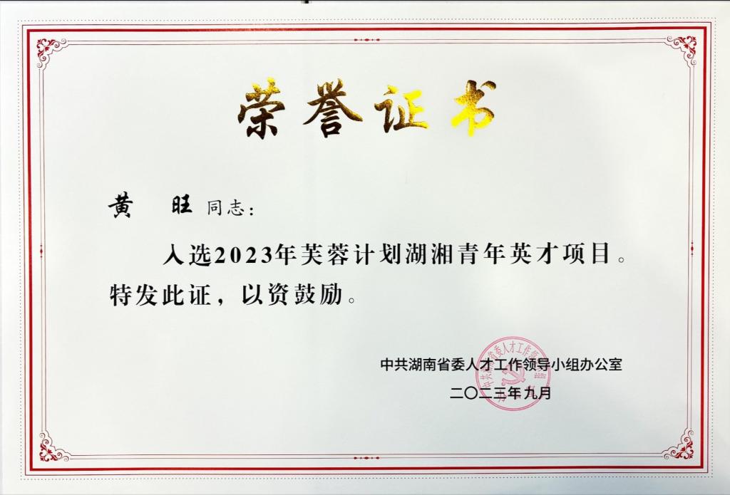 12月8日下午,由省委组织部指导,团省委主办,省青联、省青科协、团长沙市委协办的“智汇潇湘·青沙龙”湖湘青年英才活动在长沙举办,活动现场宣读了2023年芙蓉计划湖湘青年英才项目入选名单,伟德2019级博士研究生黄旺同学入选。