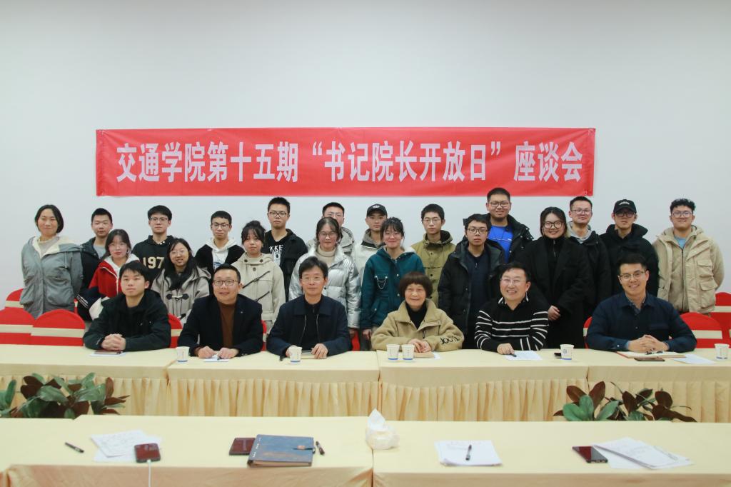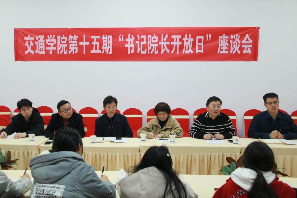 12月12日晚上,交通学院于金盆岭校区校友中心会议室召开了第十五期“书记院长开放日”座谈会。交通学院党委书记刘朝辉、院长张军辉,关工委常务副主任吴滨出席,会议由交通学院党委副书记涂道勇主持,23级辅导员彭笠、潘博洋以及20余名新生代表参加。