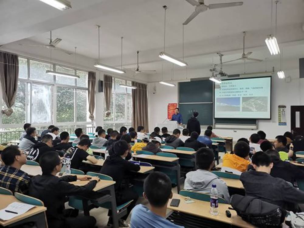 在学生们有序入场后,黄拓详细讲解了道路工程专业、现代道路的发展趋势和膨胀土地区公路建设成套技术。其中黄拓重点提到:“公路建设成套技术不仅对科学研究做出了巨大的贡献,在政治上也有着重大的意义。”