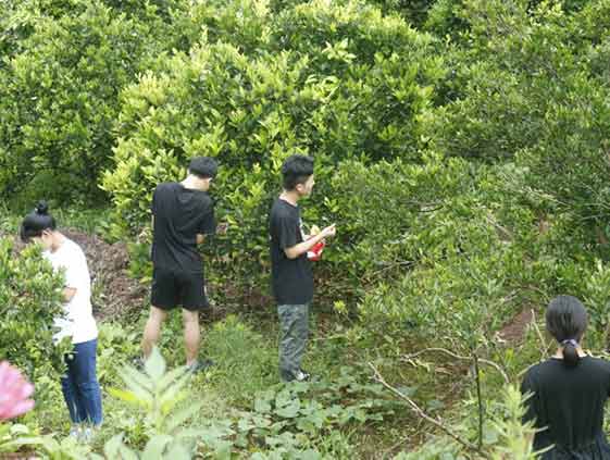 蜂巢团队赴宋家湾村实践团在村民的指引下穿过崎岖颠簸的山路抵达橘林,实践成员从橘林的土壤成分、地理位置等方面进行调研,最终发现宋家湾村土质适合柑橘的生长。在了解宋家湾村基本情况的同时,实践团组长召开了例会,及时总结调研内容和结果,并讨论相关问题,为与姚茂盛、宋先仁进行交流做好充分准备。交流中,姚茂盛向蜂巢团队介绍村子目前资金稀缺的状况以及未来发展规划,同时也强调想要吸纳有想法的年轻人回村做建设的期望。
